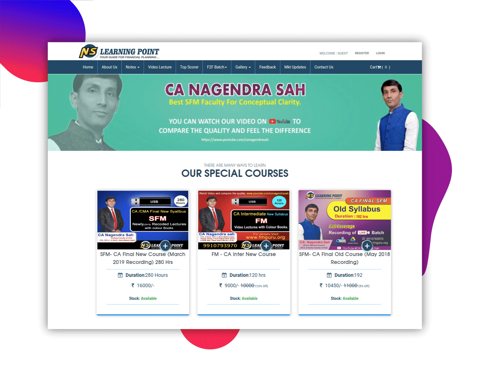 NS Learning Point is laerning managment system for Preparing CA/CMA/CSlevel exam.